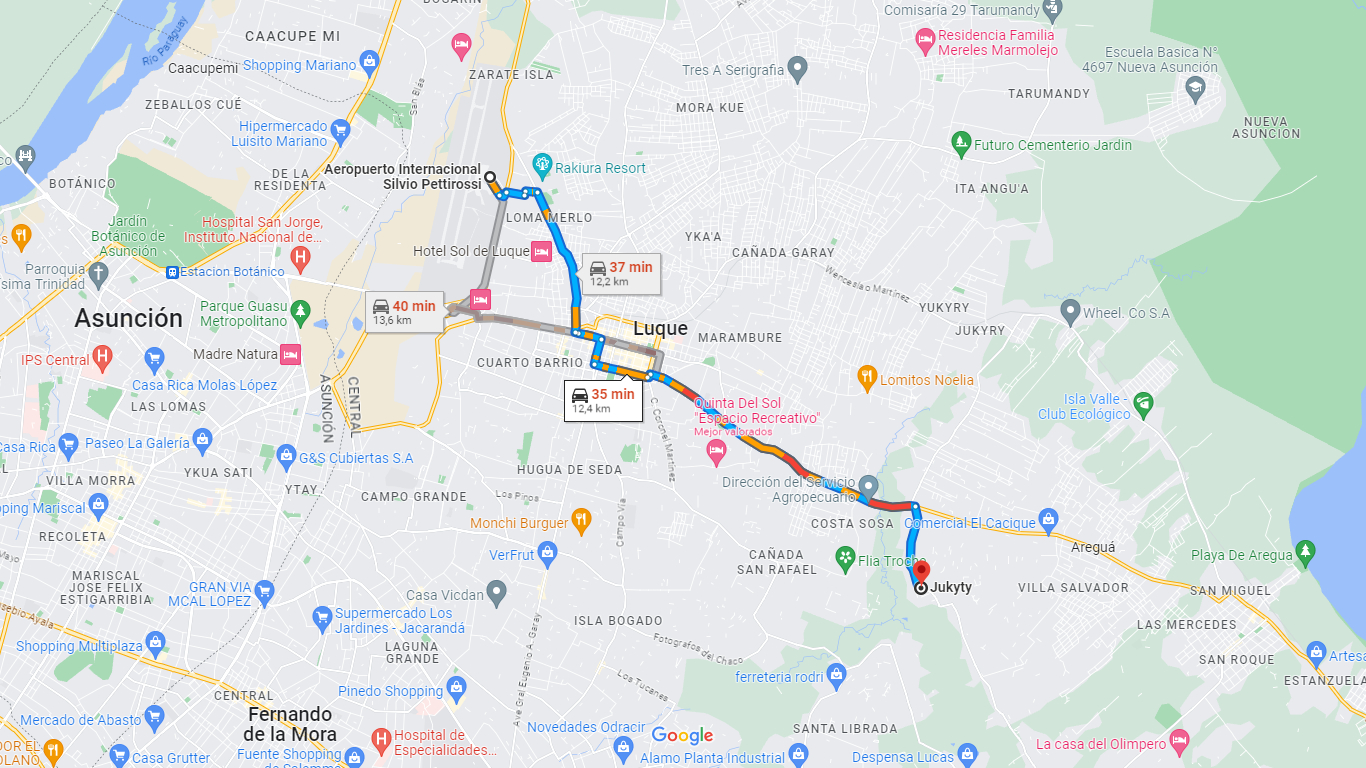 A escasos 25 a 35 minutos del Aeropuerto internacional Silvio Pettirossi.