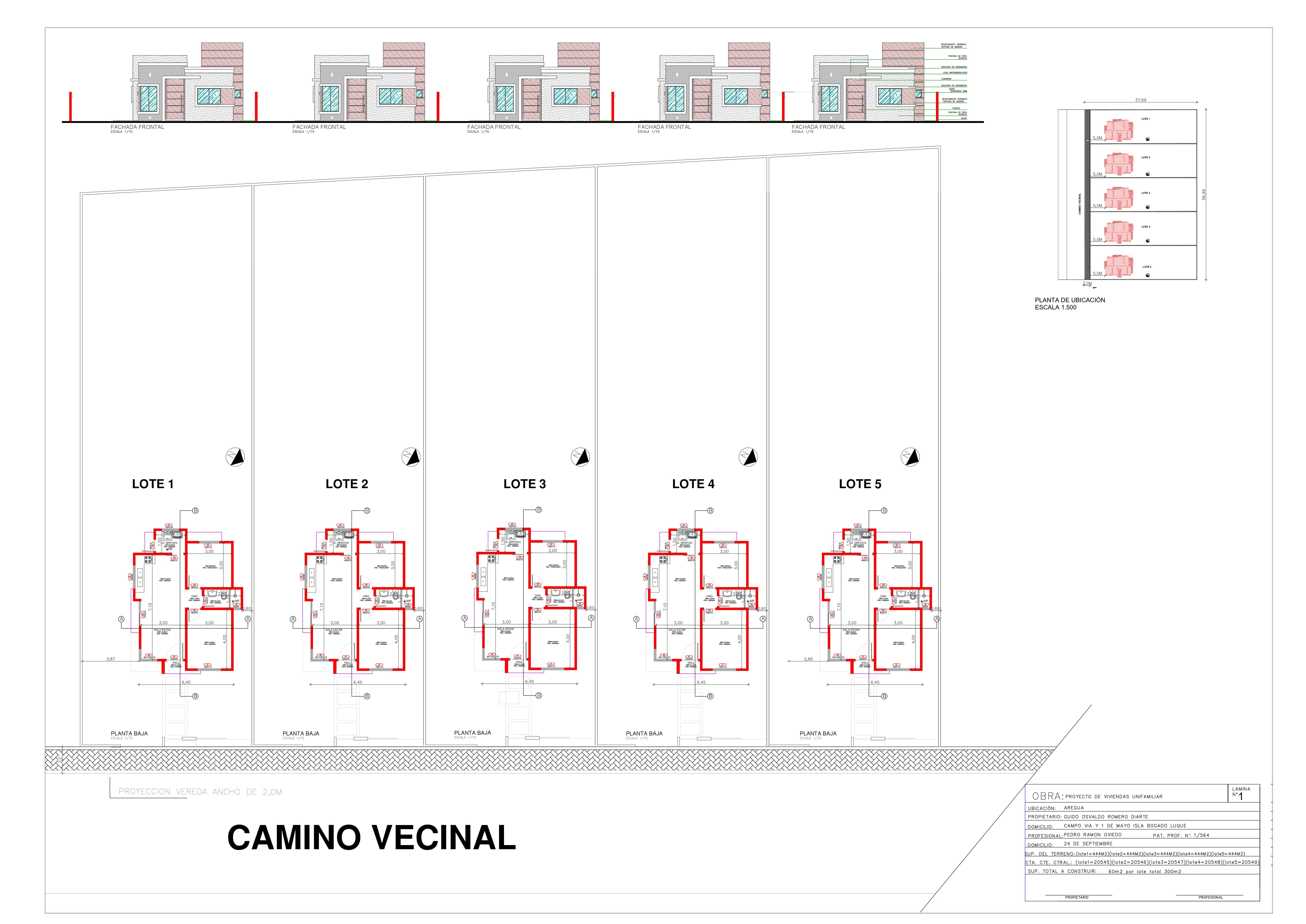 Dimensiones de cada Propiedad es de 440 a +450 M2 con un frente entre11 a 12 metros por 35 y 41 de fondo.